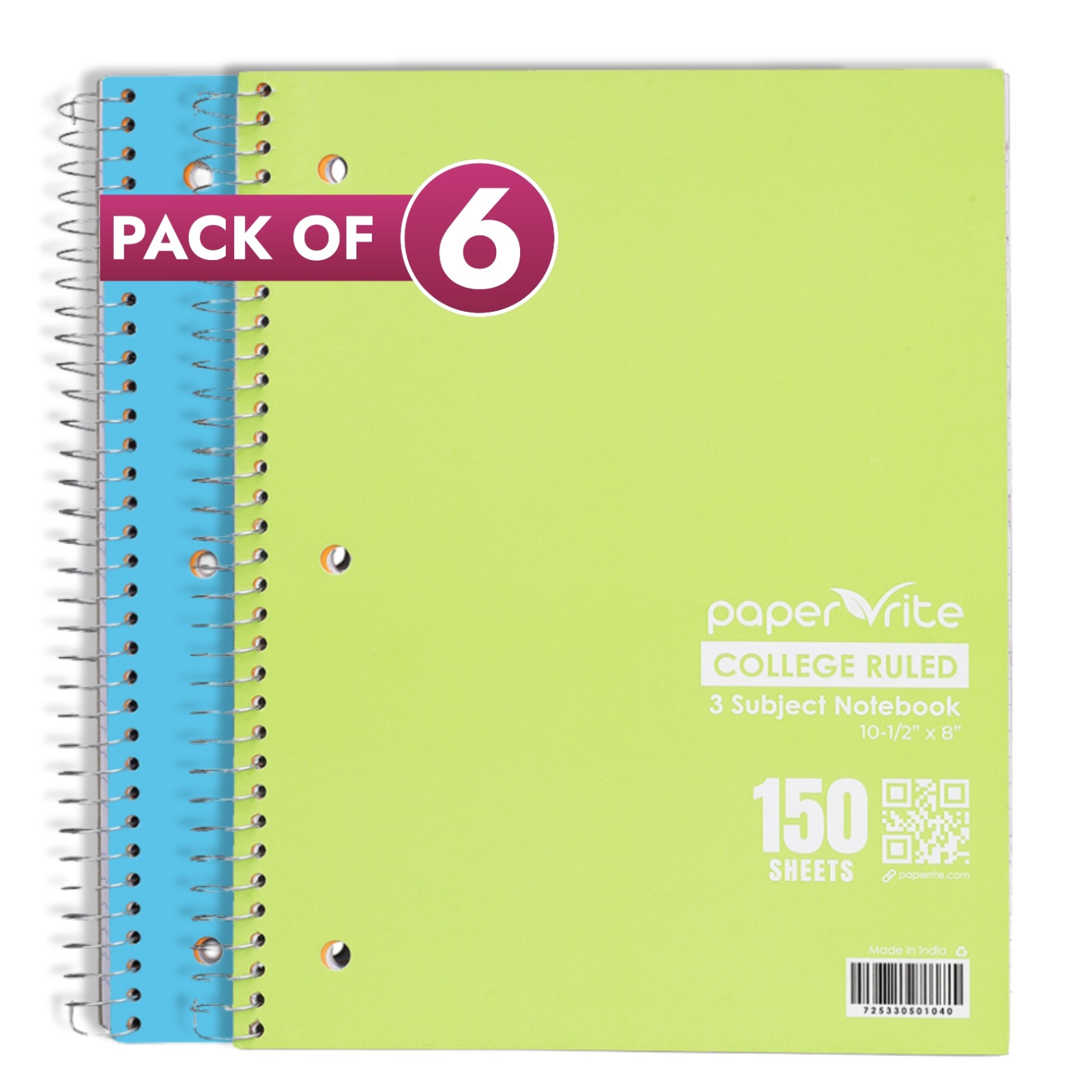 3 Subject Notebook College Ruled Pastel Green & Blue Pack of 6