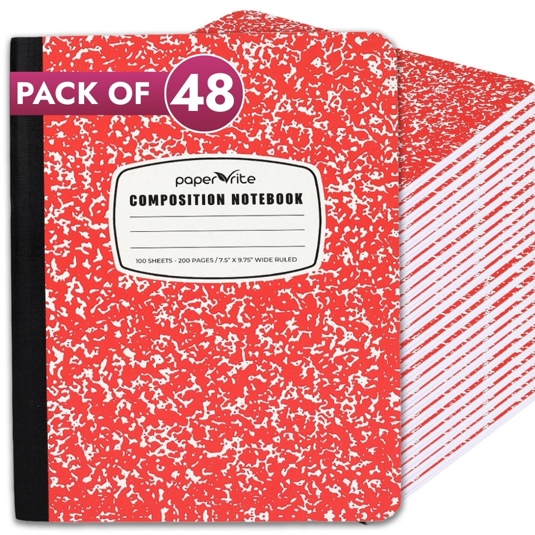 Pack of 48 wide-ruled composition notebooks in pastel red